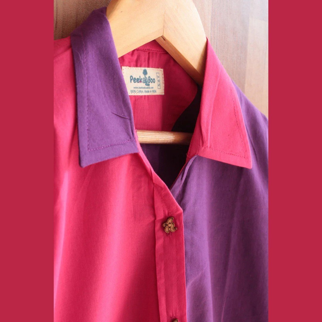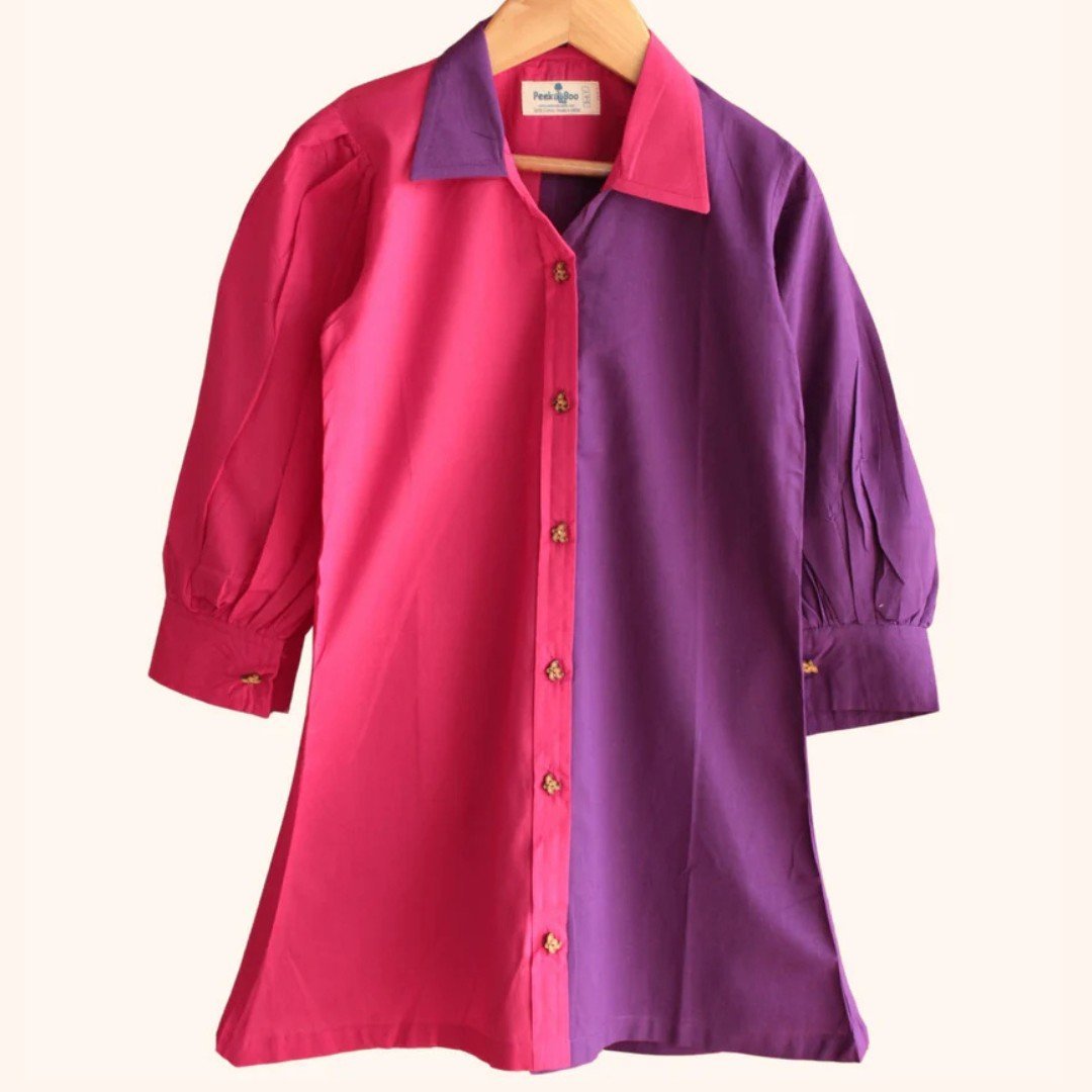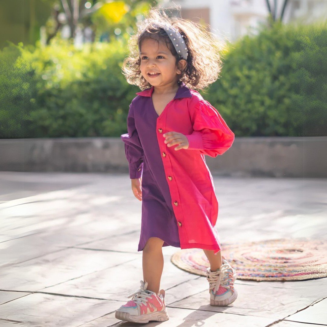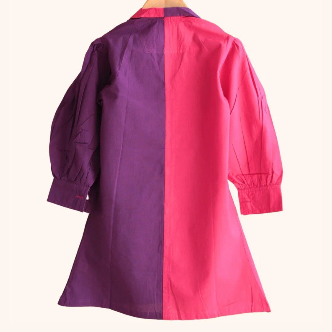 Add a pop of charm to your little one’s wardrobe with this adorable cotton colorblock dress! Made from soft, breathable 100% cotton, it keeps her comfy all day long. Featuring stylish wooden buttons, a smart collar, and gathered shoulder details, this dress blends playful vibes with classic elegance — ideal for sunny days and casual outings!