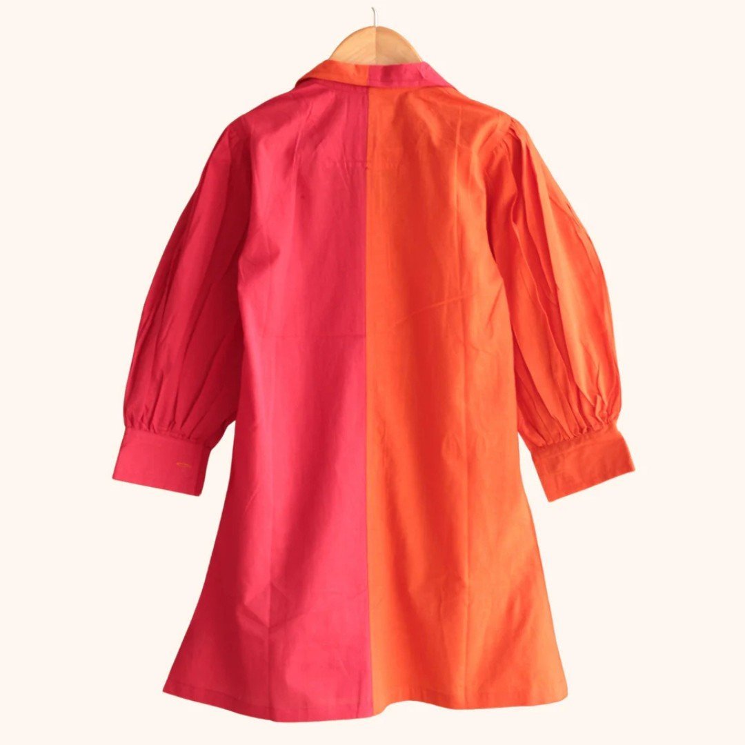 Be the first to review “Girls Cotton Colorblock Collared Dress – Red & Orange”