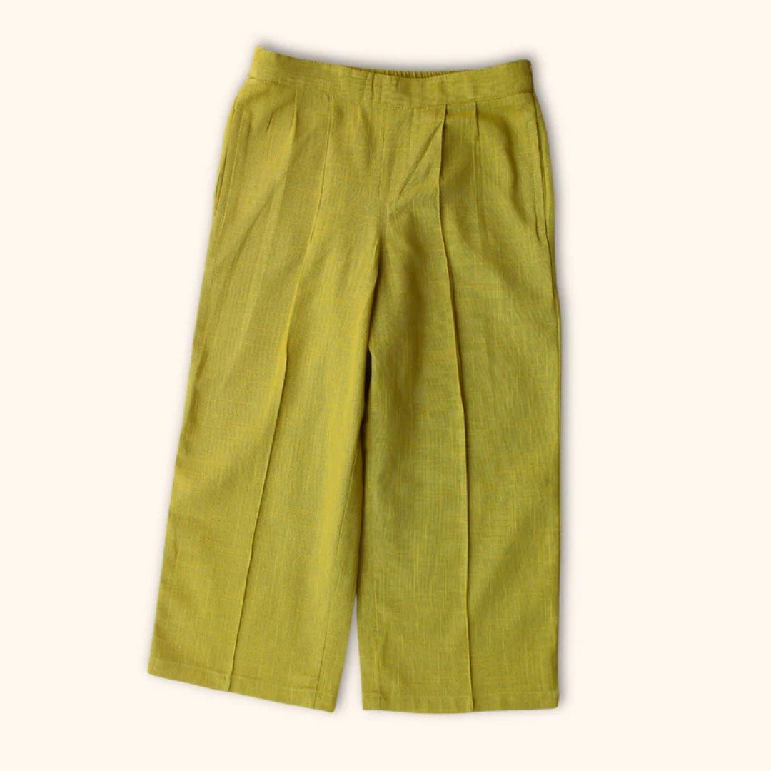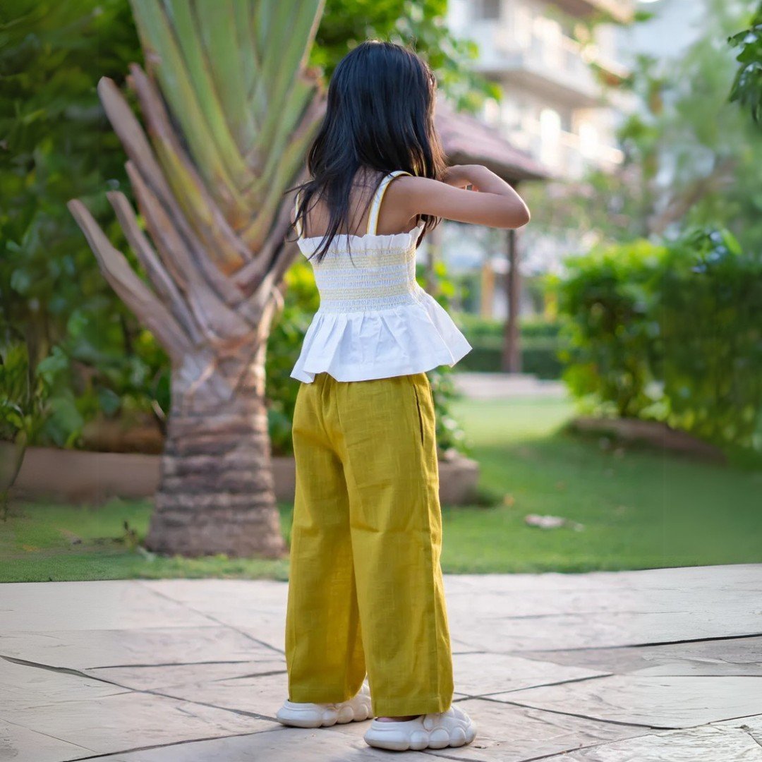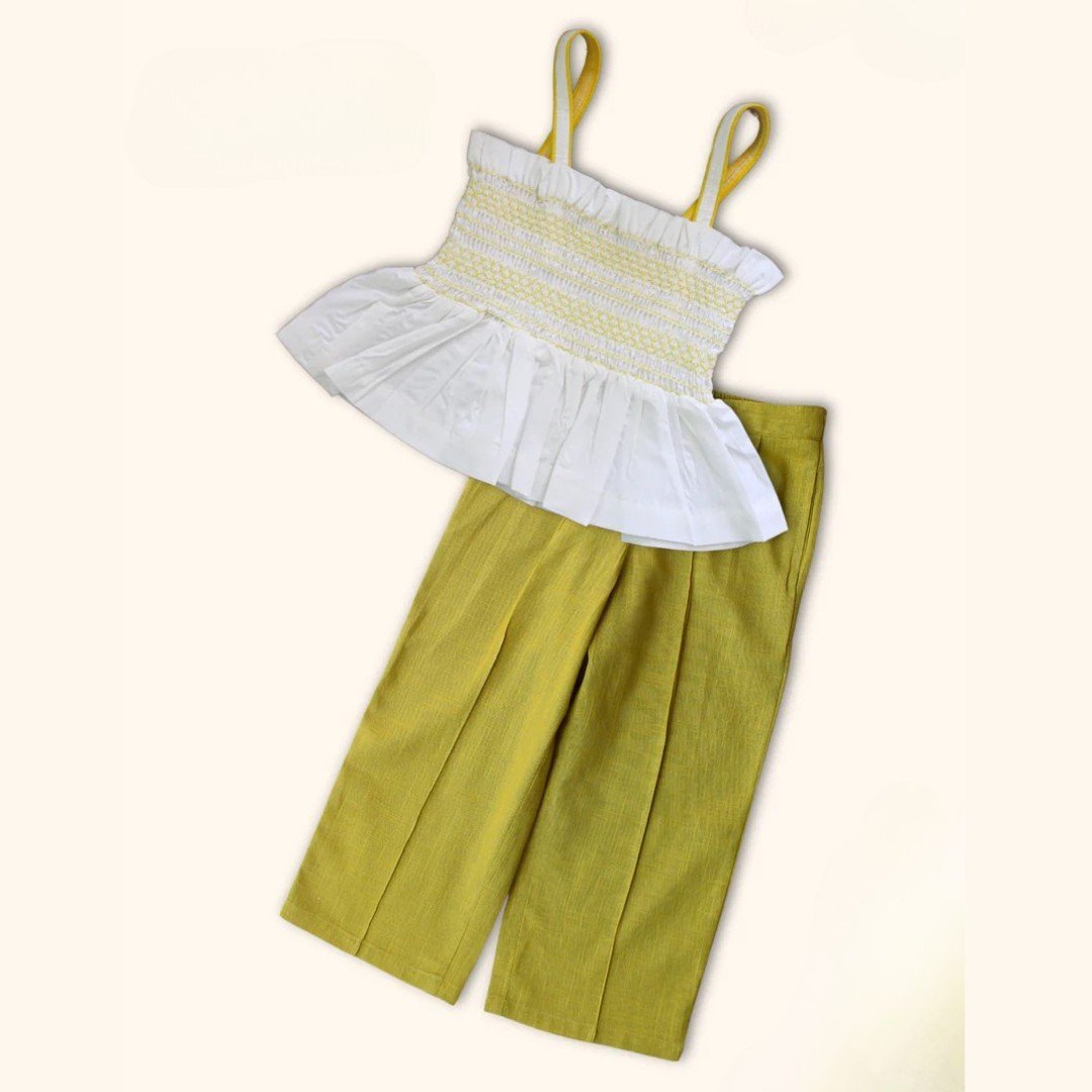 Girls Tropical Smocked Crop Top & Pleated Cotton Pants – Green