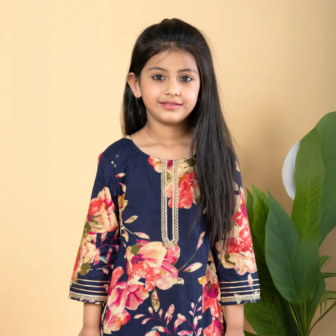 - Kurti: Straight-cut floral printed design with elegant detailing.