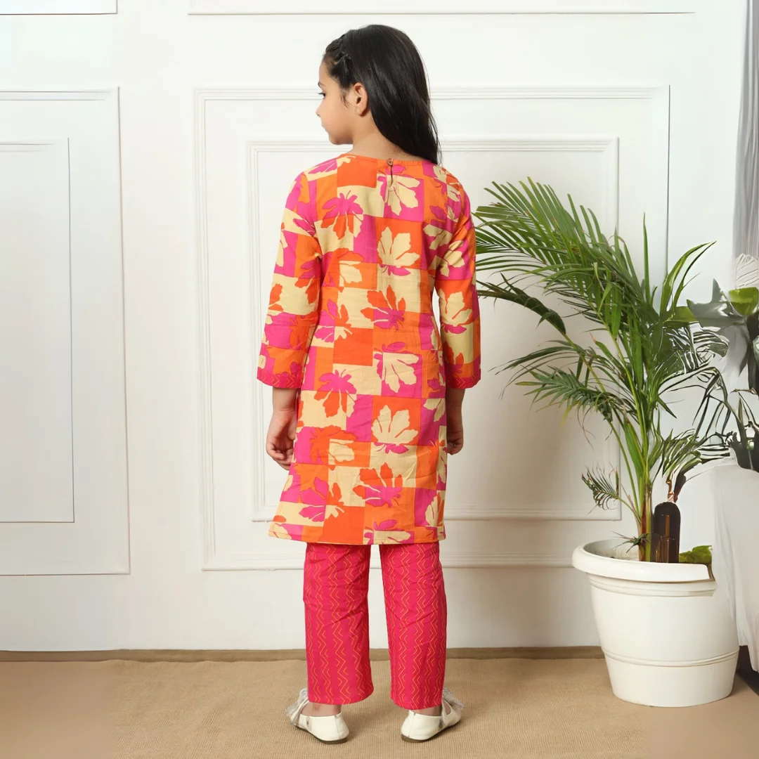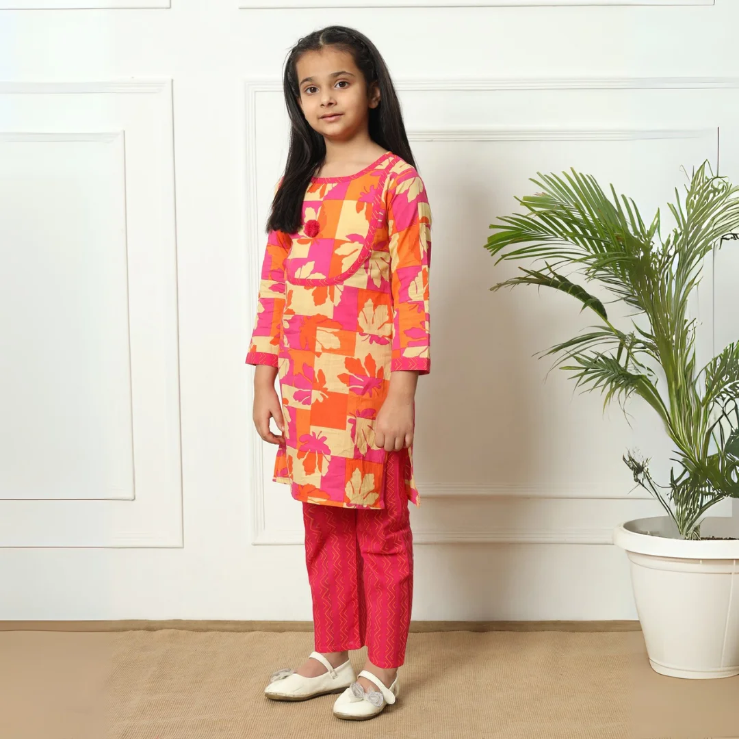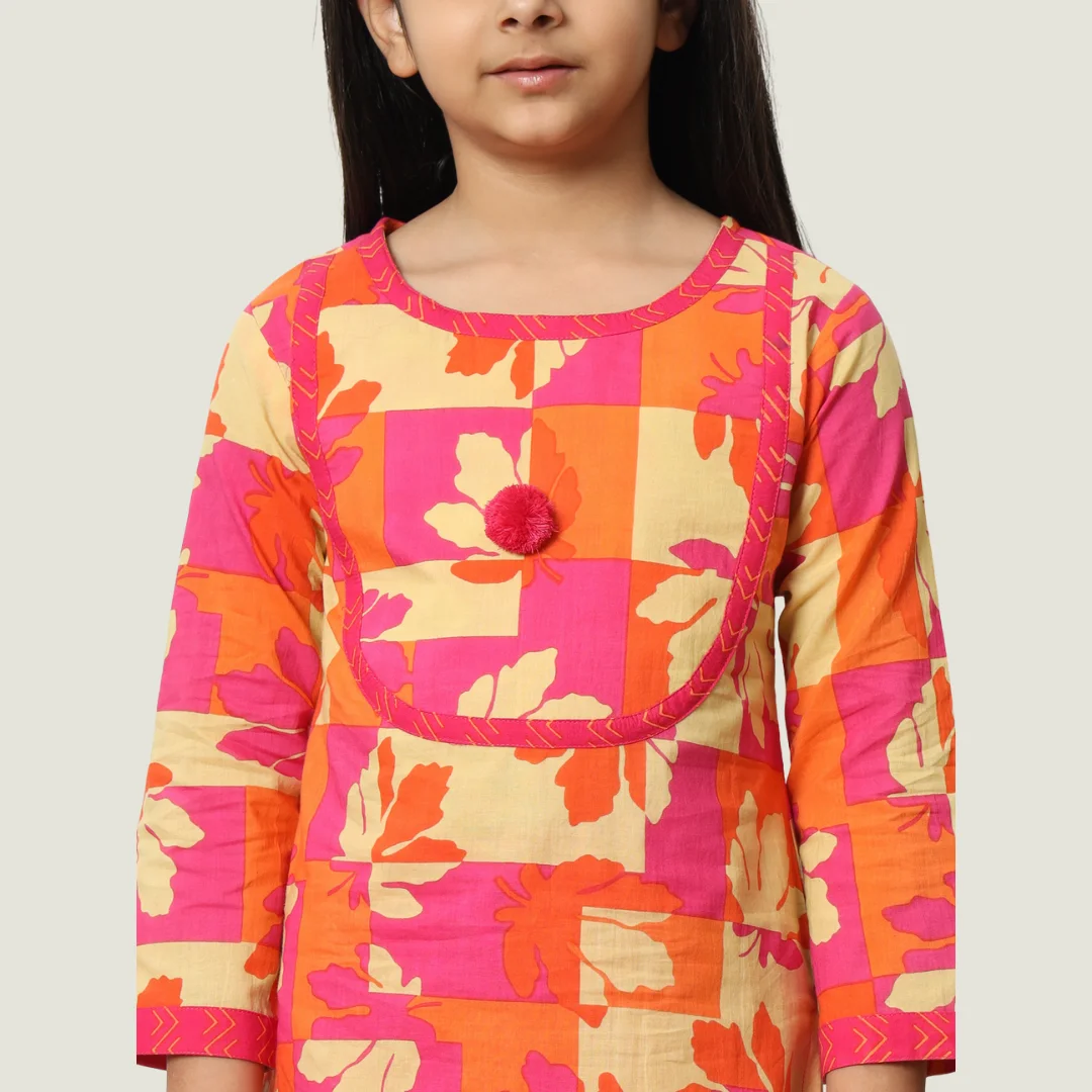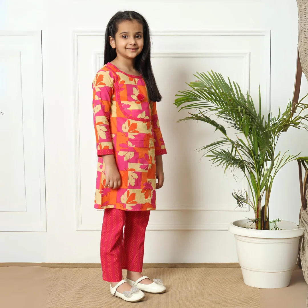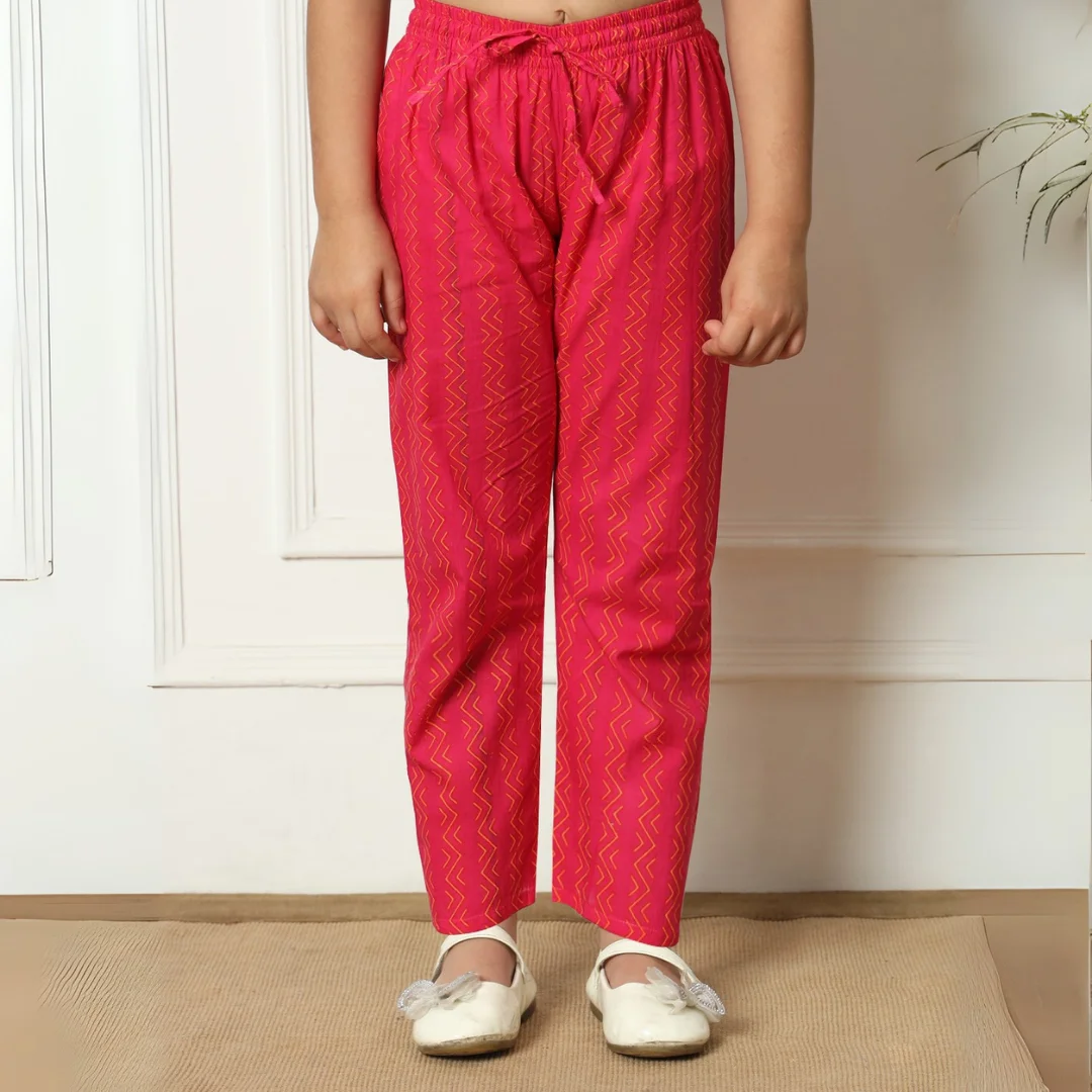 Girls Pink Color Printed Straight Kurti with Palazzo ? A stylish and comfortable outfit perfect for festive occasions.